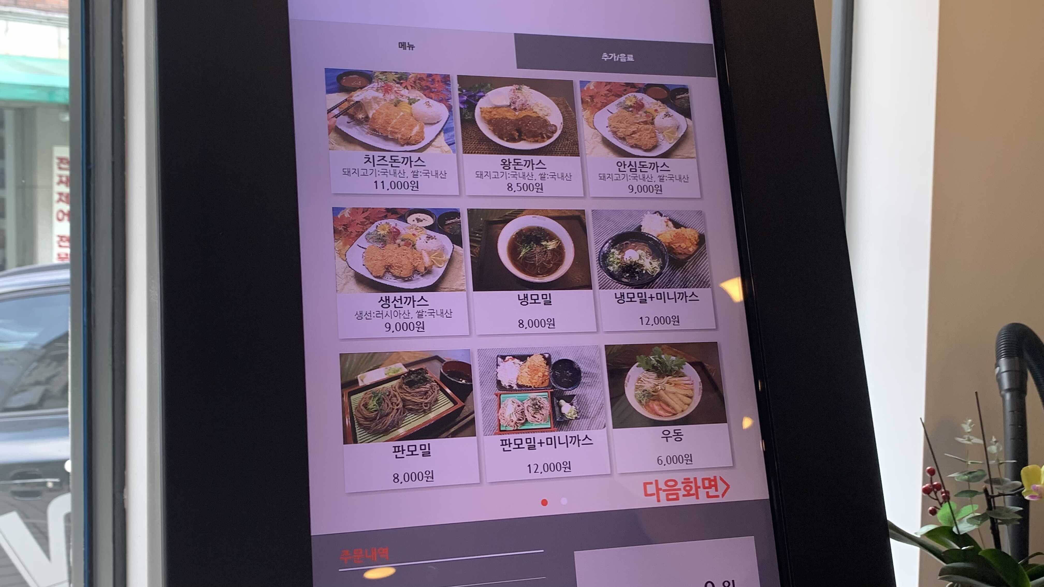 왕돈까스, 안심돈까스, 냉모밀 주문!