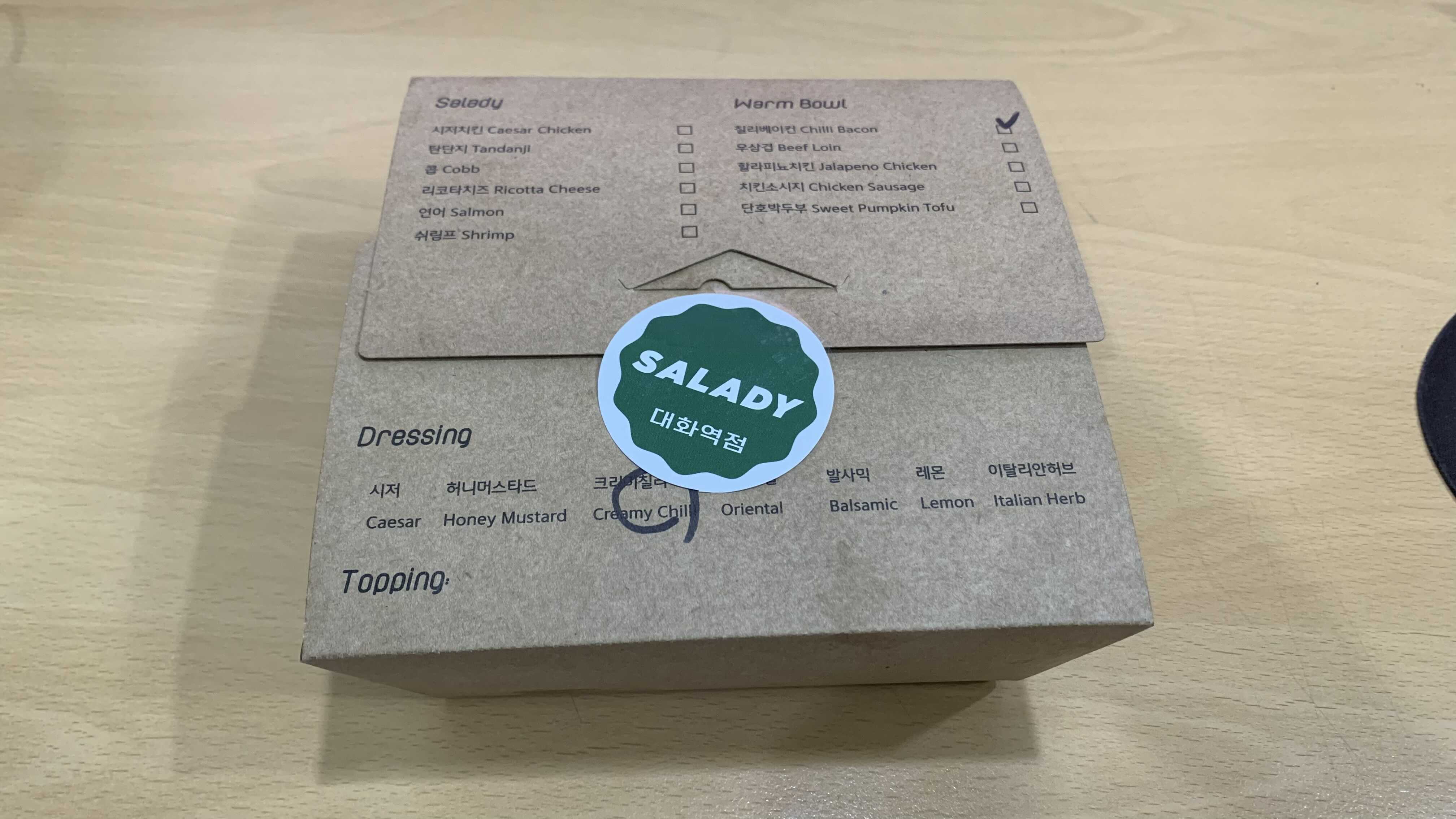 SALADY 대화역점 스티커가 붙어서 옵니다.