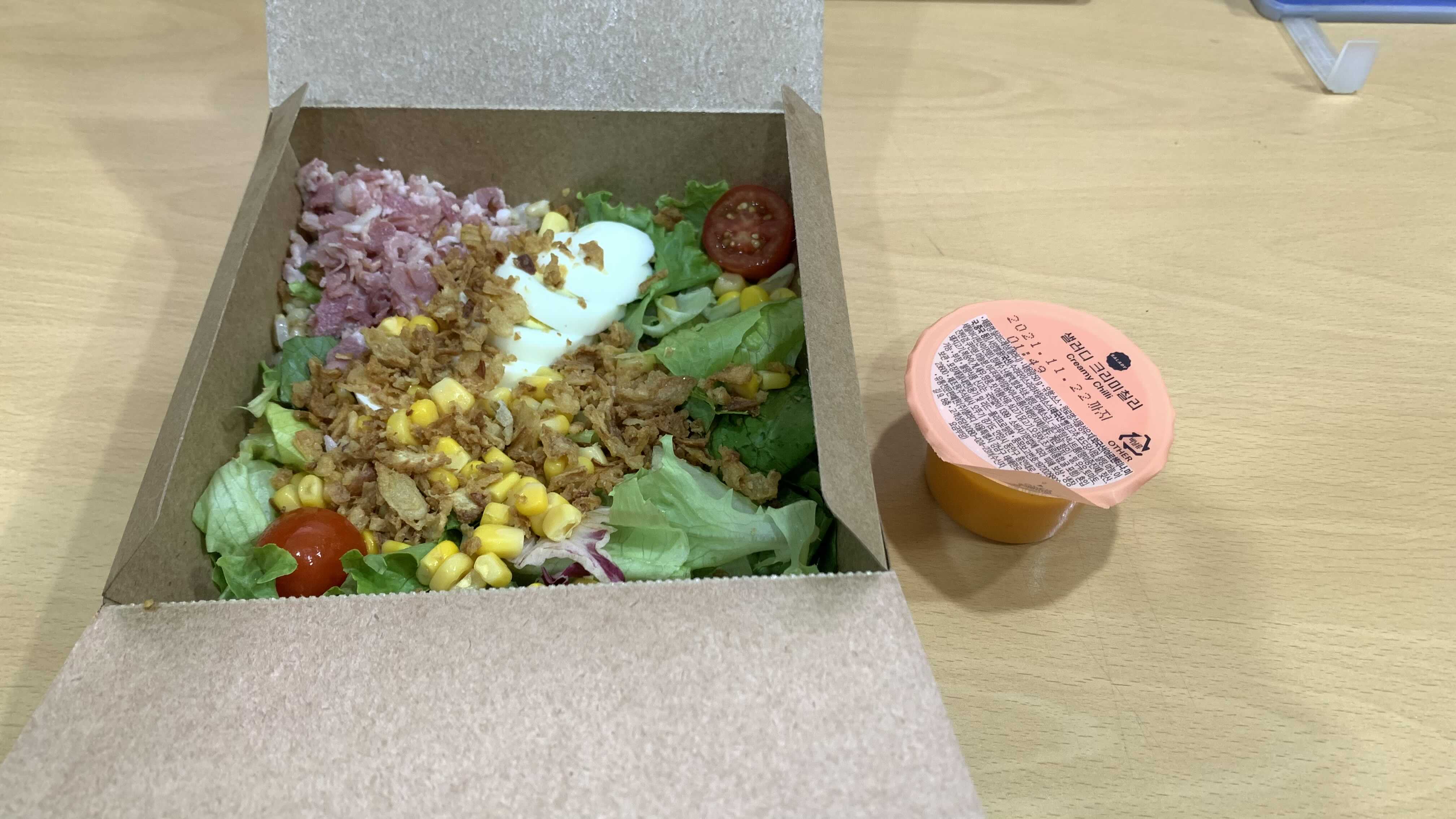 크리미 칠리 소스는 별도 용기에 오고