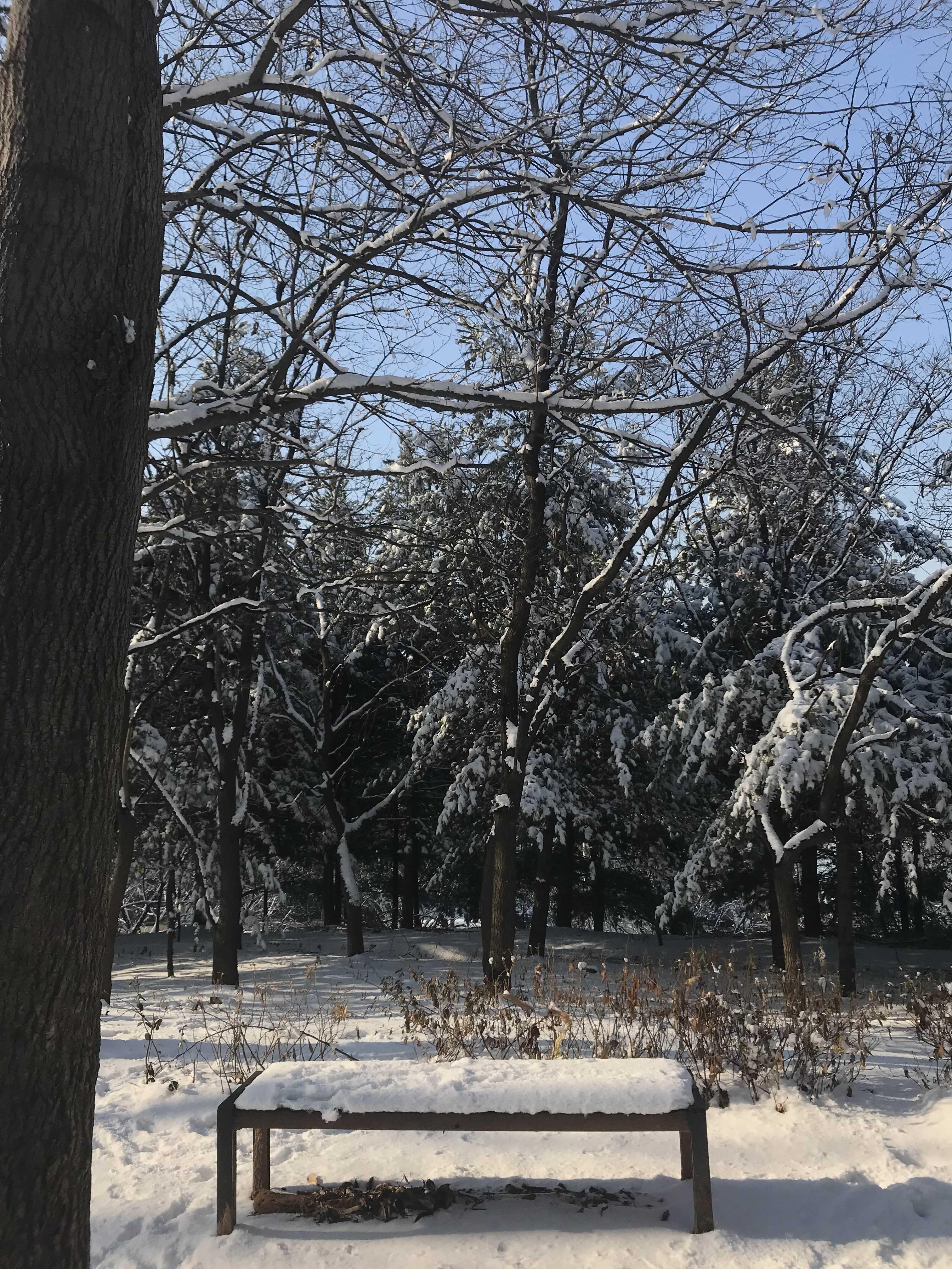 눈이 수북히 쌓인 공원.